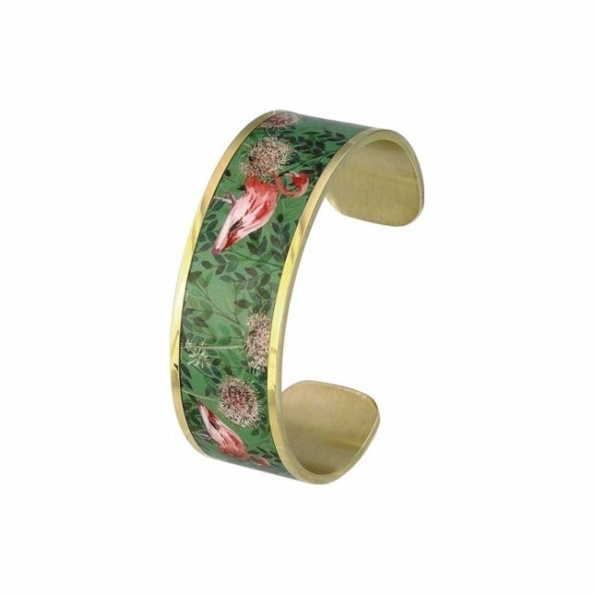 Bracelet manchette ouverte Louise's Garden Flamant en métal doré