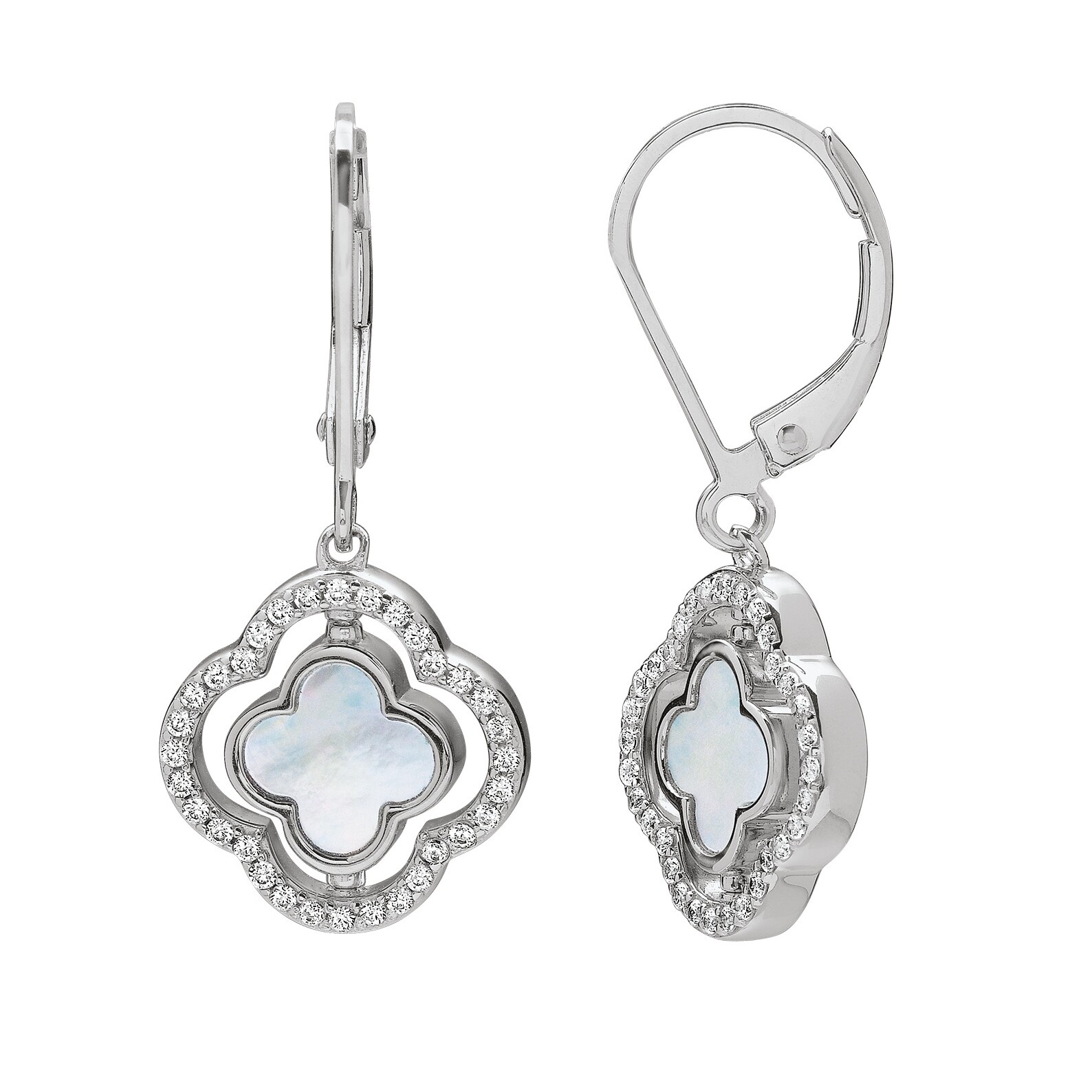 Boucles d'oreilles argent 925/000 nacre et oxyde de zirconium reversible
